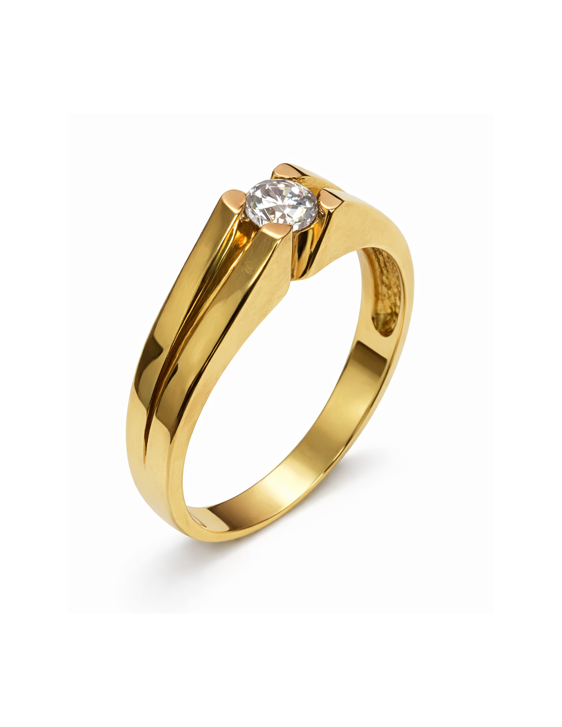 Anillo Solitario para Hombre con circonita - Oro Amarillo 18K