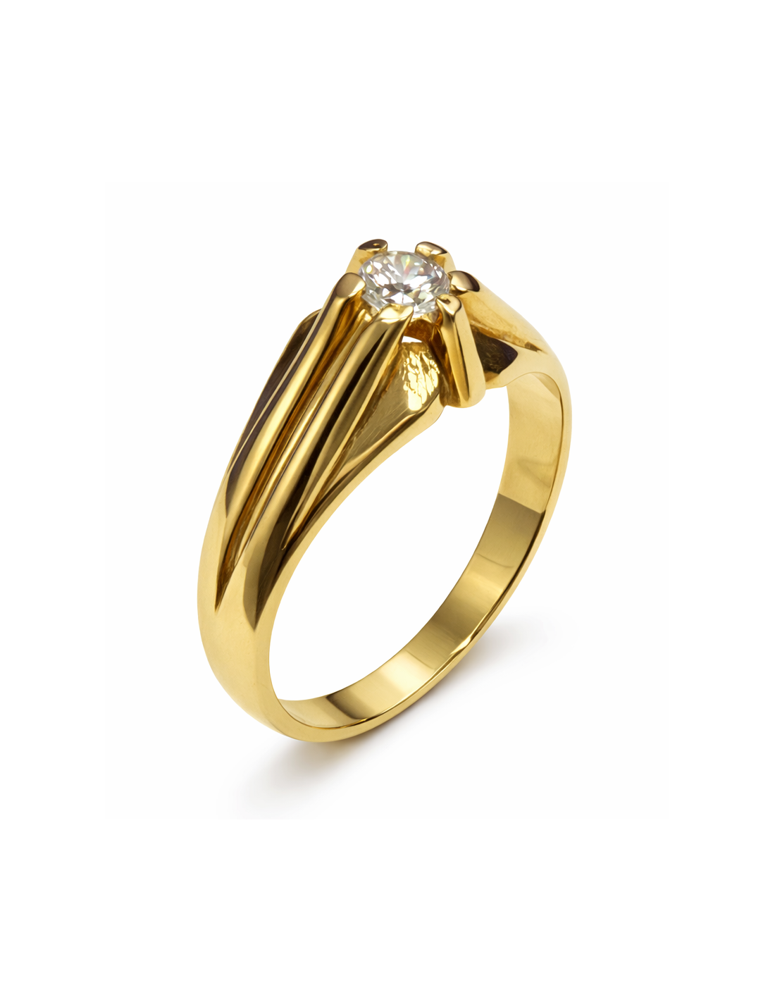 Anillo Solitario para Hombre con circonita - Oro Amarillo 18K