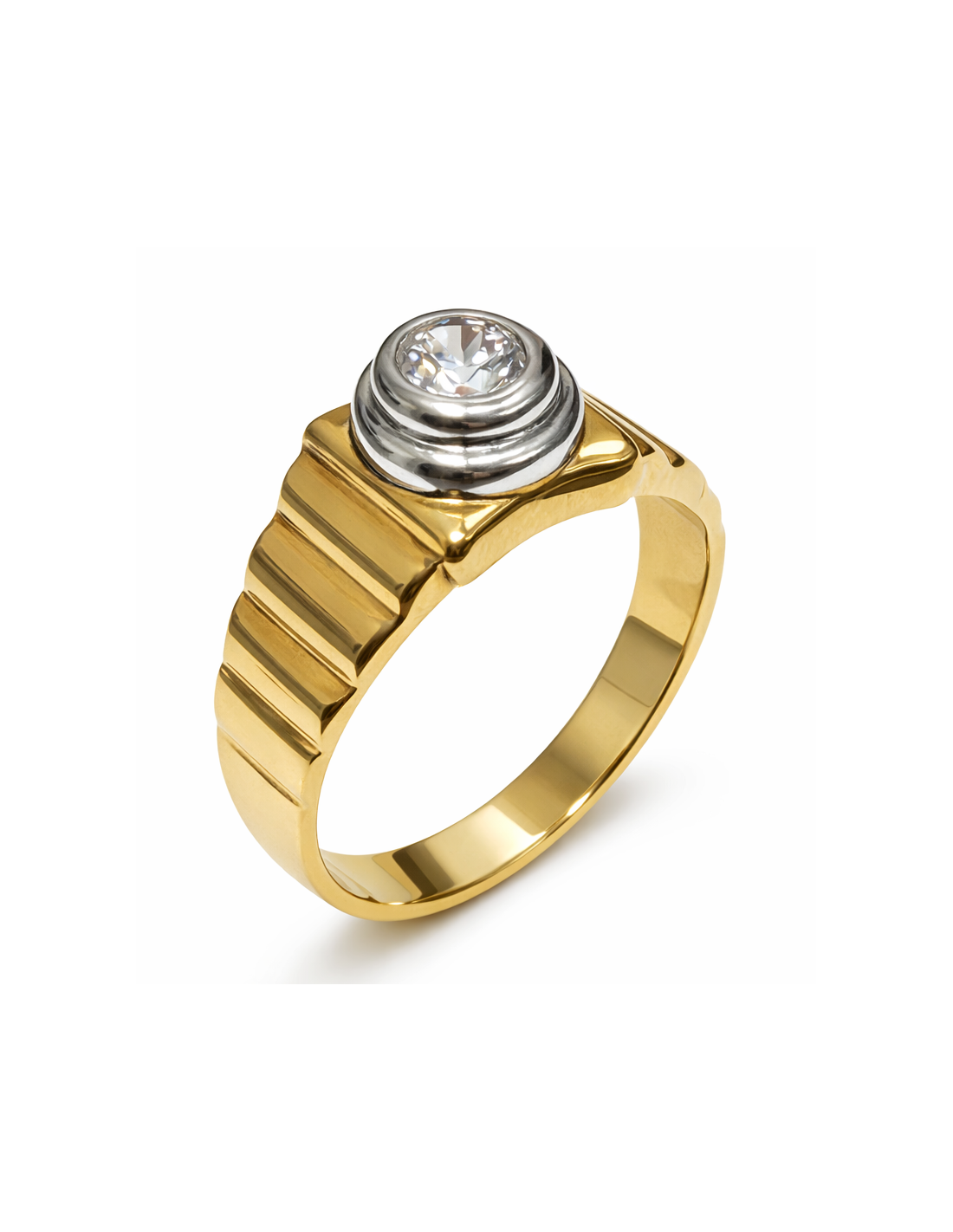 Anillo Solitario para Hombre con circonita - Oro Amarillo y Blanco 18K