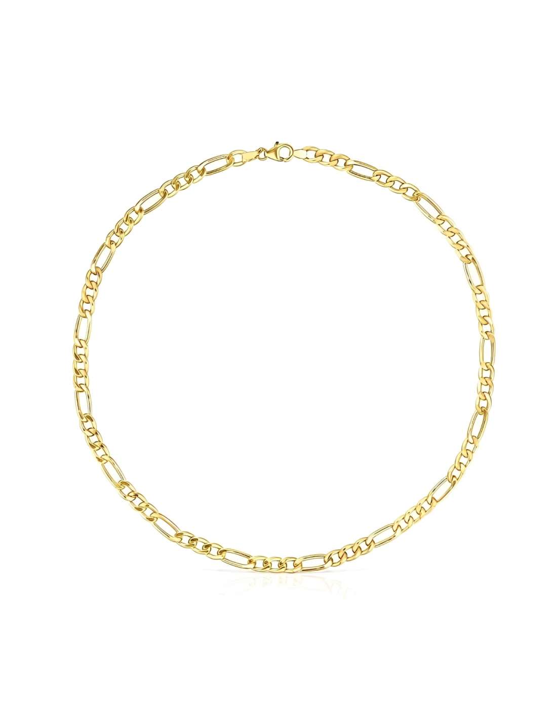 Robusta y elegante, esta cadena de eslabón 3x1 está fabricada en oro de 18 quilates, diseñada especialmente para caballeros que buscan un estilo clásico y con carácter. Su estructura combina un eslabón largo seguido de tres eslabones cortos, creando un patrón distintivo y resistente, ideal para uso diario o para llevar con colgantes.