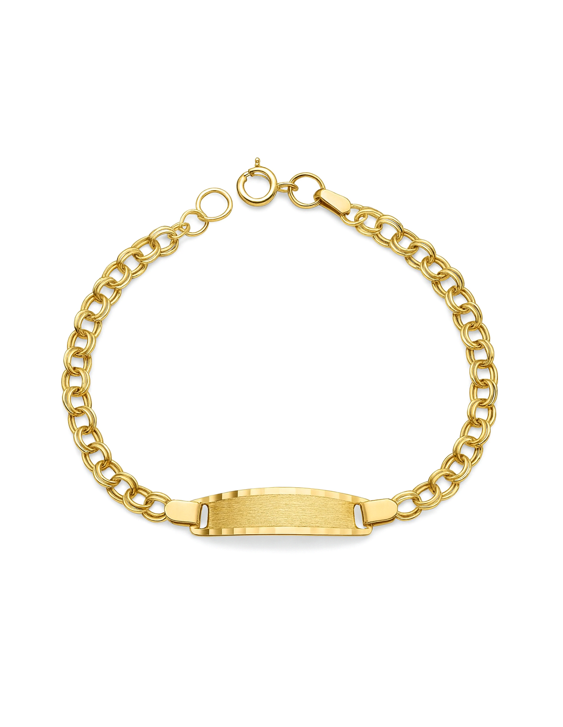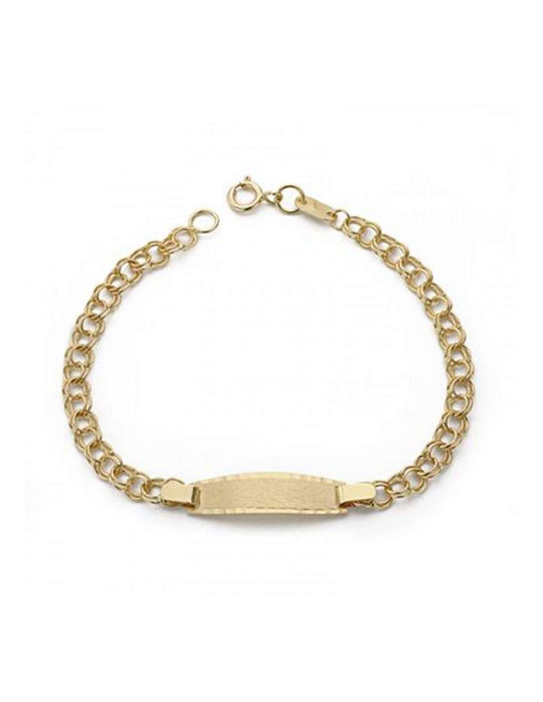Esta preciosa pulsera esclava para bebé o niño/a está fabricada en oro amarillo de 9 kilates y presenta una cadena húngara compuesta por eslabones dobles entrelazados, que aportan resistencia y un acabado sofisticado con placa central mate ideal para grabar nombre o fecha. Un diseño clásico y elegante, perfecto como primer regalo.