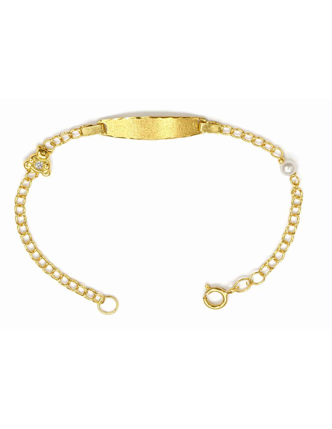 Pulsera Esclava infantil Perla y Osito con Circonita - Oro Amarillo 18K