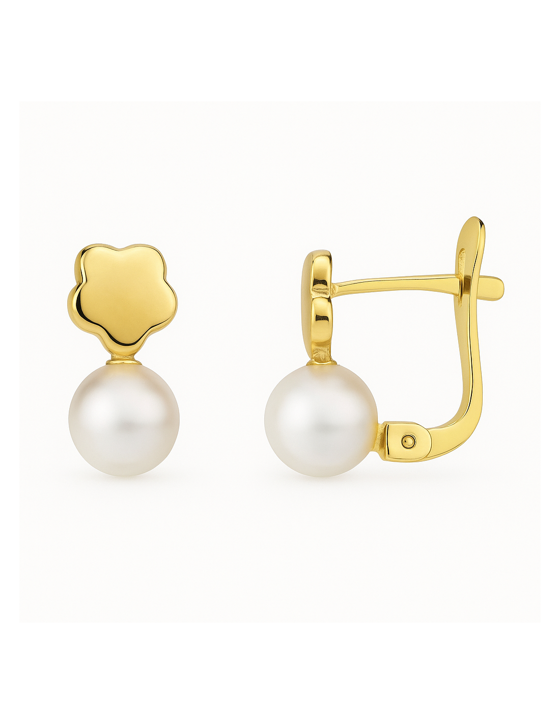 Pendientes Flor de Oro con Perla Redonda – Joyería Infantil Elegante
