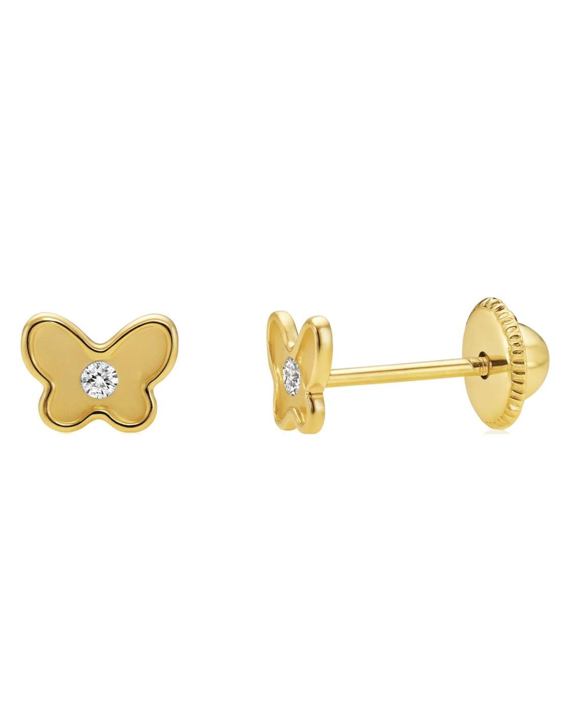Pendientes para Niña Mariposa con circonita central - Oro Amarillo 18K