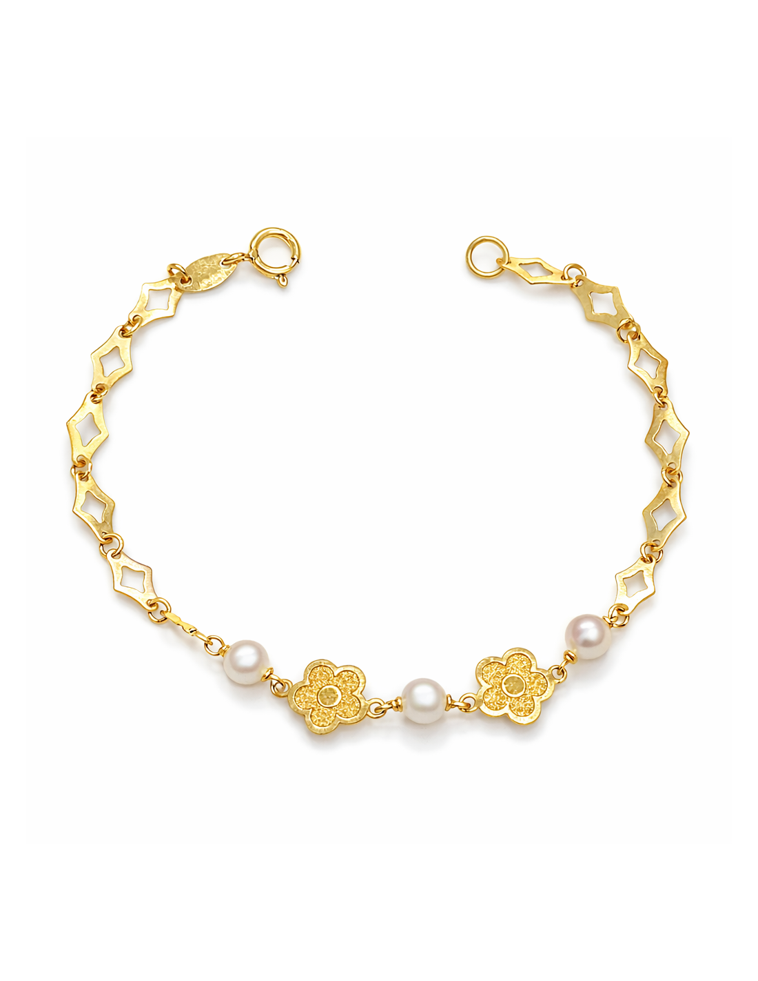 Pulsera de Oro Infantil con Perlas y Flores – Diseño Elegante y Delicado